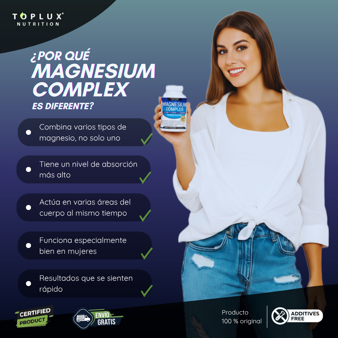 🔥 Magnesium Complex Toplux fue creado para mujeres que quieren recuperar ligereza, energía y una figura más definida.